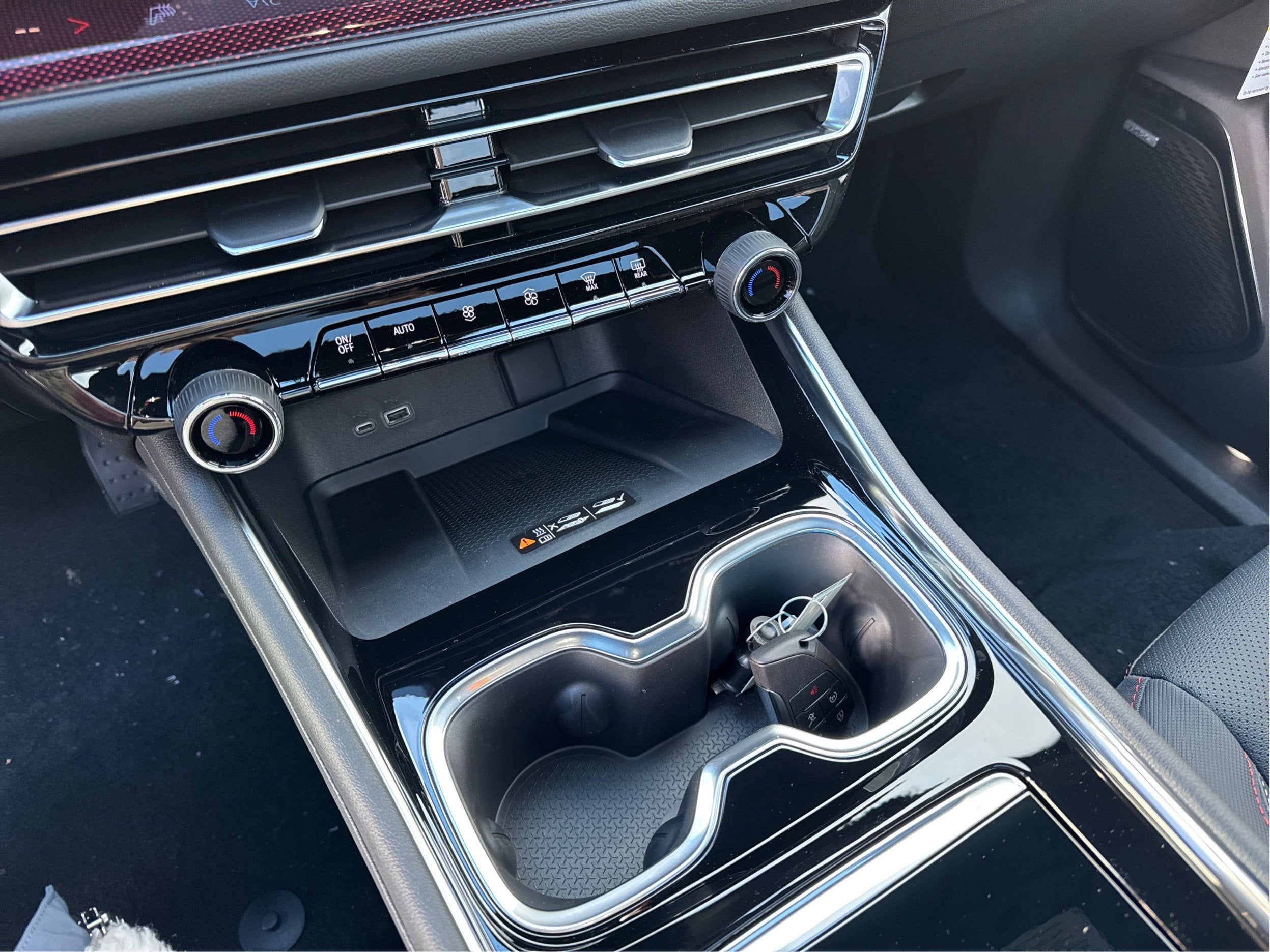 - Wireless phone charging pad located in the center console under HVAC controls