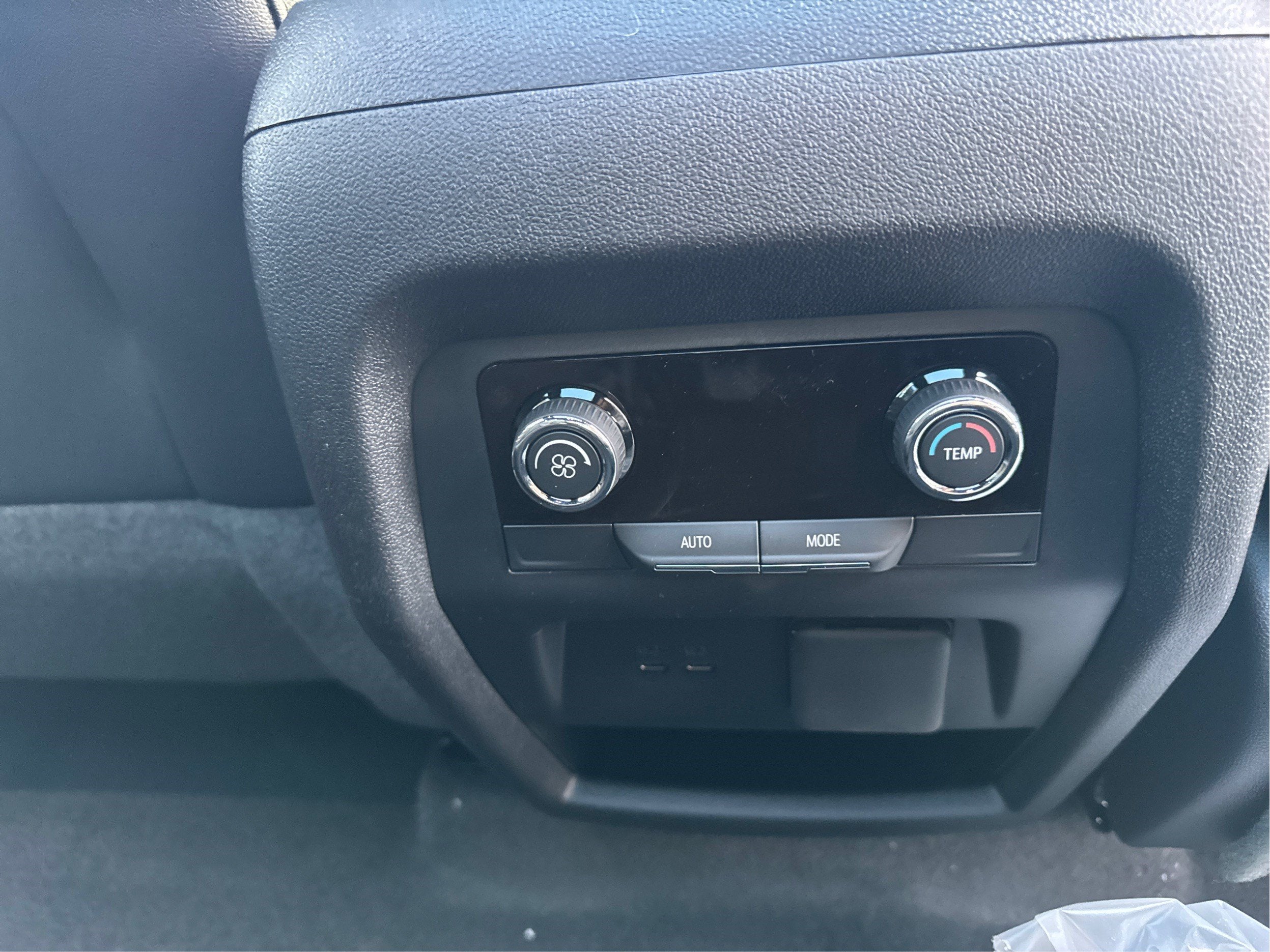 - Auxiliary controls in the rear of the cabin include air delivery mode and temperature up/down settings
