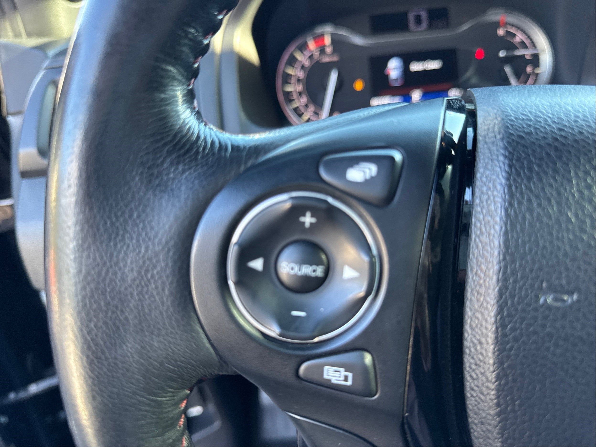 - Smooth steering. The leather and piano black steering wheel gives you a comfortable and stylish grip.