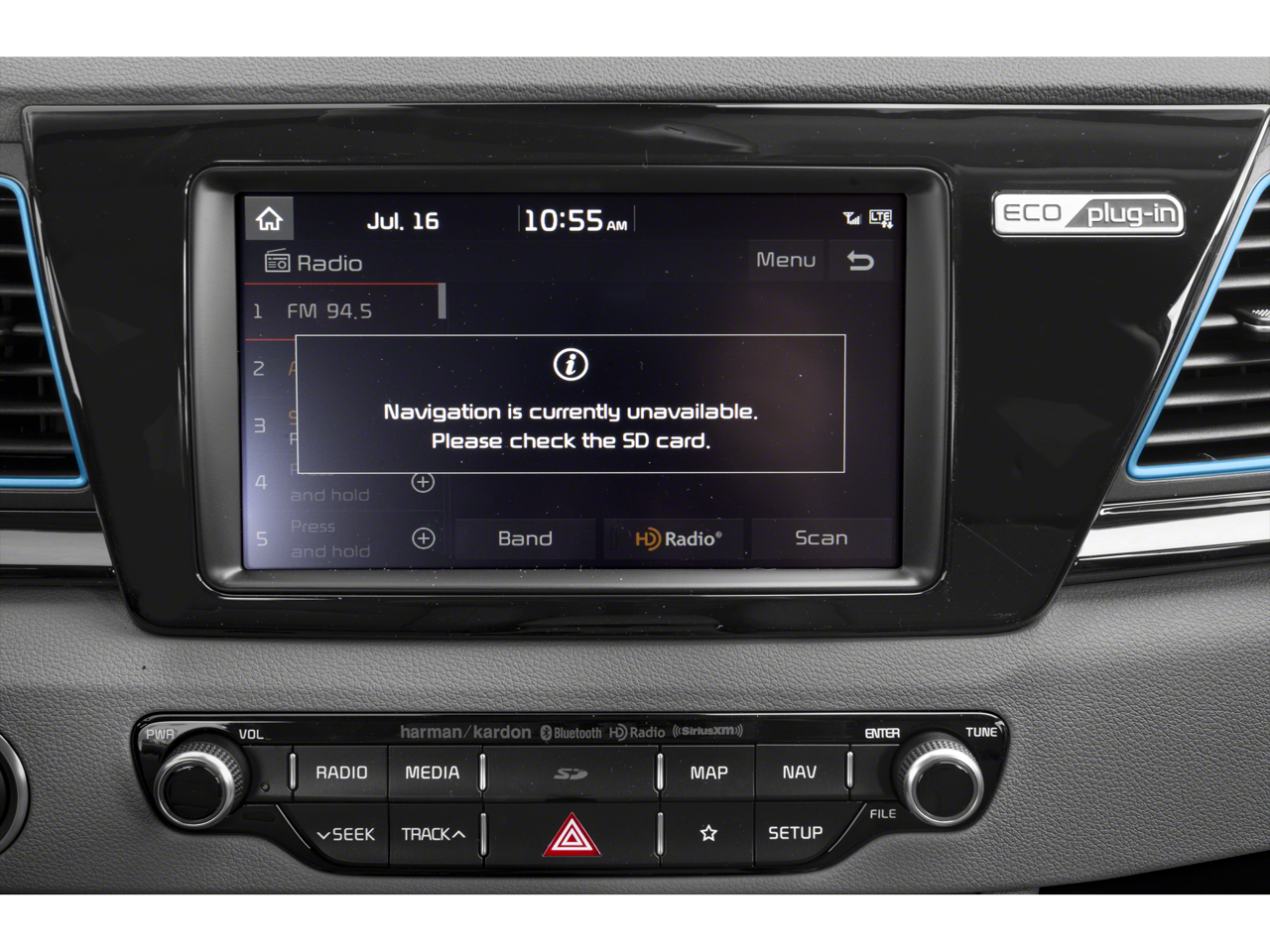 - Radio: AM/FM/MP3/SiriusXM Satellite w/Navigation -inc: harman/kardon premium surround sound, 8 speakers, Bluetooth® wireless technology w/steering-wheel-mounted controls, 8" touchscreen navigation AVN5.0 w/UVO eco and support for Android Auto and Apple Carplay, USB, auxiliary input jacks and USB charger outlet