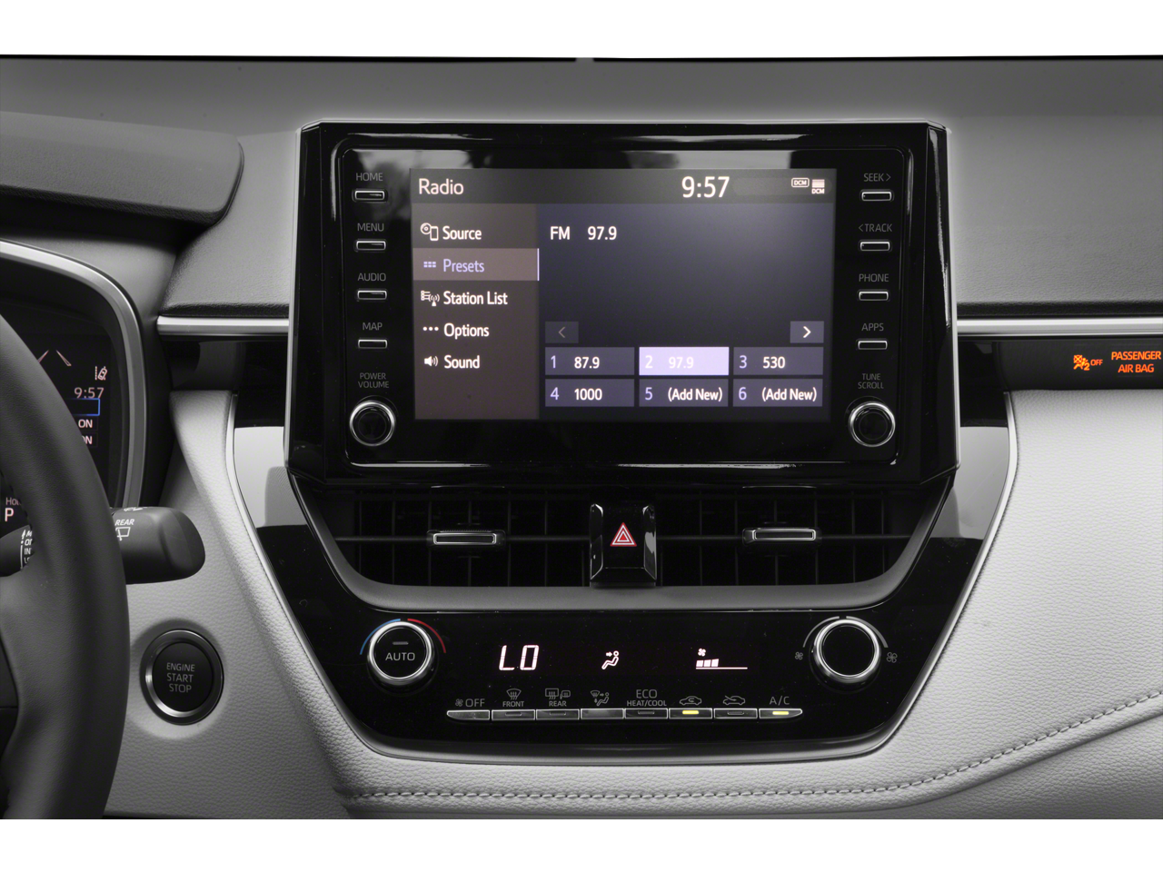 - Radio: Audio AM/FM -inc: 6 speakers, 8" touch-screen, Android Auto, Apple CarPlay compatible, USB media port, 2 USB charge ports, hands-free phone capability, advanced voice recognition, music streaming via Bluetooth® wireless technology and SiriusXM w/3-month all access trial, Toyota Connected Services - Safety Connect w/1-year trial and Wi-Fi Connect w/up to 2 GB within 3-month trial