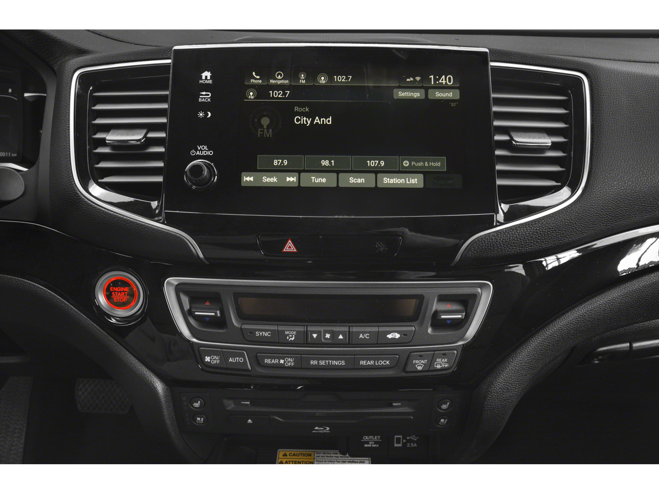- Radio: 590-Watt Premium Audio System -inc: 10 speakers, subwoofer, 8" display audio w/high-resolution electrostatic touch-screen and customizable feature settings, 2.5-amp USB smartphone/audio interface front console (1 port), Bluetooth® HandsFreeLink, Bluetooth® streaming audio, MP3/auxiliary input jack, Radio Data System (RDS), Speed-Sensitive Volume Compensation (SVC), 2.5-amp USB charging port in center console (1 port) and 2nd row (2 ports), HondaLink, CabinControl remote compatibility, Apple CarPlay integration, Android Auto integration, SMS text message function (Compatible w/select phones w/Bluetooth®, Your wireless carrier's rate plans apply, State or local laws may limit use of texting feature, Only use texting feature when conditions allow you to do so safely.), SiriusXM radio (SiriusXM services require a subscription after any trial period, If you decide to continue your SiriusXM service at the end of your trial subscription, the plan you choose will automatically renew and bill at then-current rates until you call SiriusXM at 1-866-635-2349 to cancel, See our customer agreement for complete terms at www.siriusxm.com, Fees and programming subject to change.Available in the 48 contiguous United States and D.C, SiriusXM and all related marks and logos are trademarks of SiriusXM Radio Inc, HD Radio, CabinTalk in-car PA system through speakers and headphones, HondaLink subscription services (HondaLink subscription services come w/complimentary trials of security for 1 year and a remote/concierge trial for 3 months, Enrollment is required to access the remote/concierge trial and to access certain features of security, At the end of each trial period, purchase of a subscription is required to continue the respective services.), Wi-Fi hotspot capability (Requires AT&T data plan.) and multi-zone audio