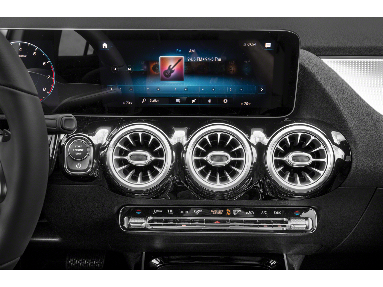 - Radio: MBUX Multimedia System -inc: 7" touchscreen multimedia display, 4 USB-C ports, Bluetooth® connectivity, voice control w/natural language and 'Hey Mercedes' activation and Mercedes me connect services w/trial