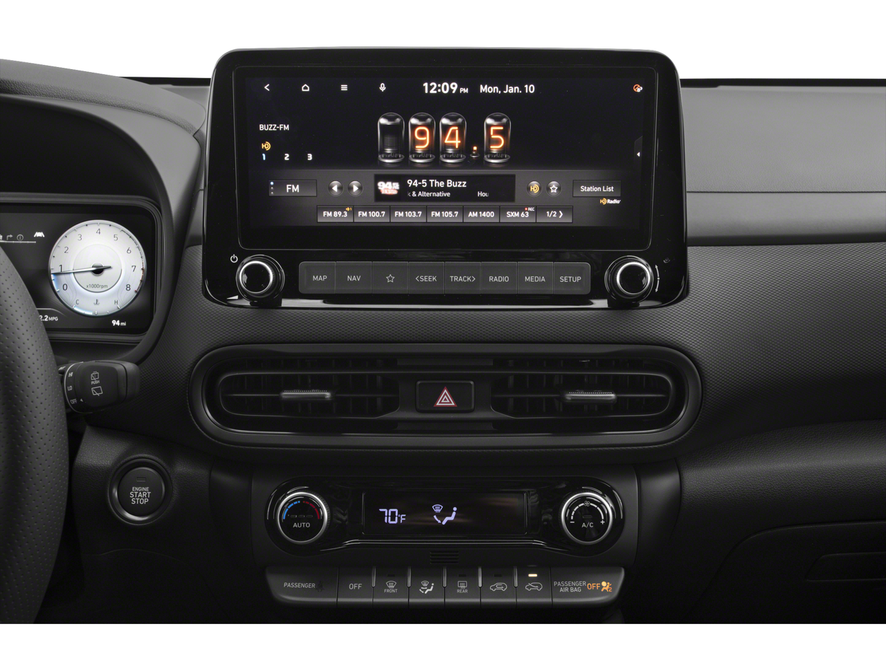 - Radio: AM/FM/SiriusXM/HD Audio System -inc: 10.25" color touchscreen, onboard navigation and traffic flow and incident data free via HD radio (HERE), harman/kardon premium audio, Clari-Fi music restoration technology, 8 speakers, dynamic voice recognition, Android Auto and Apple CarPlay compatibility, USB connectivity, Blue Link connected car system and OTA map updates
