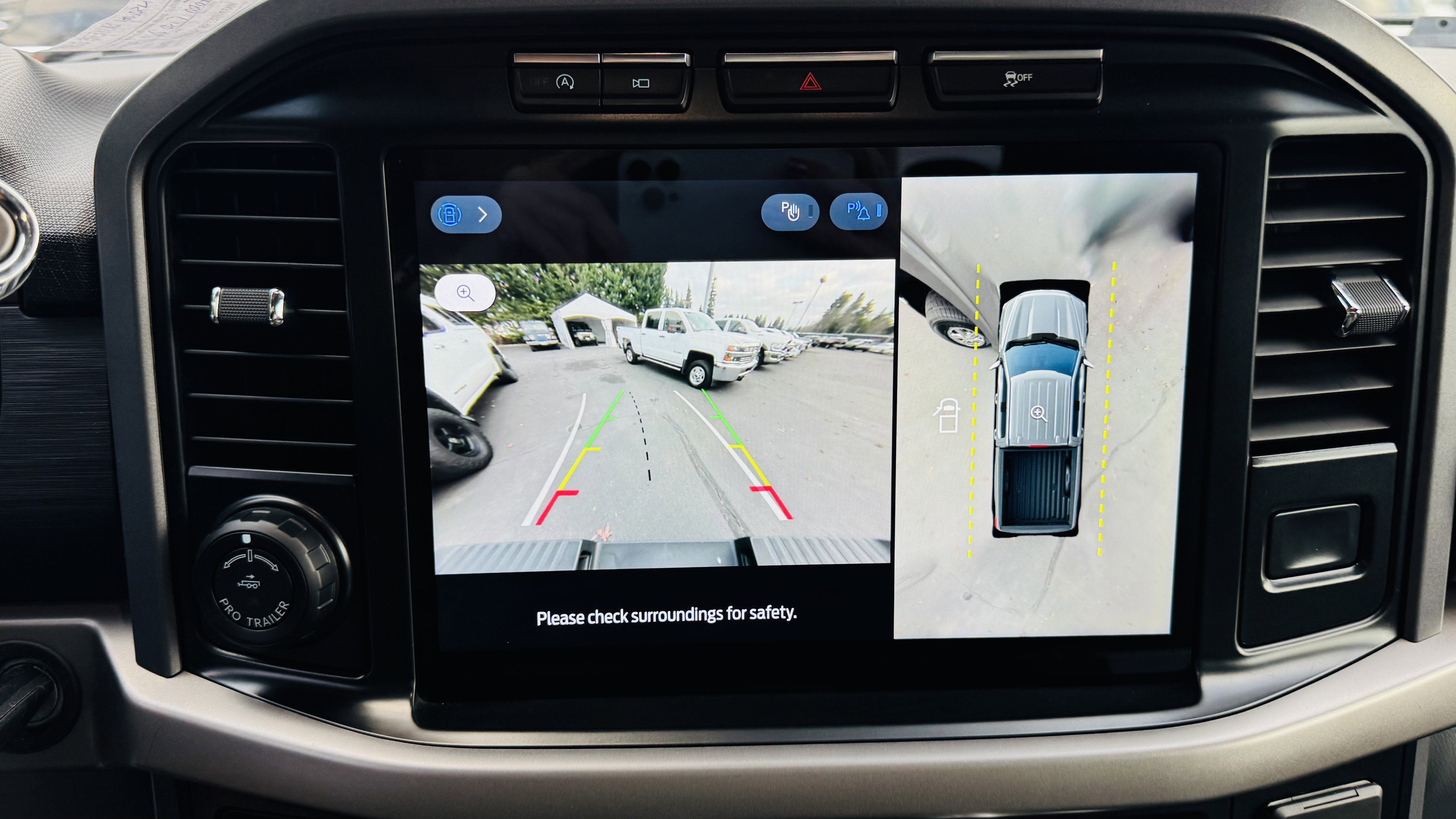 Reverse Sensing System Rear Parking Sensors, Reverse Camera Back-Up Camera, Reverse Brake Assist, Rear Child Safety Locks, Pre-Collision Assist with Automatic Emergency Braking (AEB), Outboard Front Lap And Shoulder Safety Belts -inc: Rear Center 3 Point, Height Adjusters and Pretensioners, Left Side Camera, Lane Keeping Alert Lane Keeping Assist, Lane Keeping Alert Lane Departure Warning, Front Camera w/Washer, Dual Stage Driver And Passenger Seat-Mounted Side Airbags, Dual Stage Driver And Passenger Front Airbags, Driver Monitoring-Alert, Collision Mitigation-Front, Cargo Bed Camera, BLIS (Blind Spot Information System) Blind Spot, Airbag Occupancy Sensor, AdvanceTrac w/Roll Stability Control Electronic Stability Control (ESC) And Roll Stability Control (RSC), ABS And Driveline Traction Control.