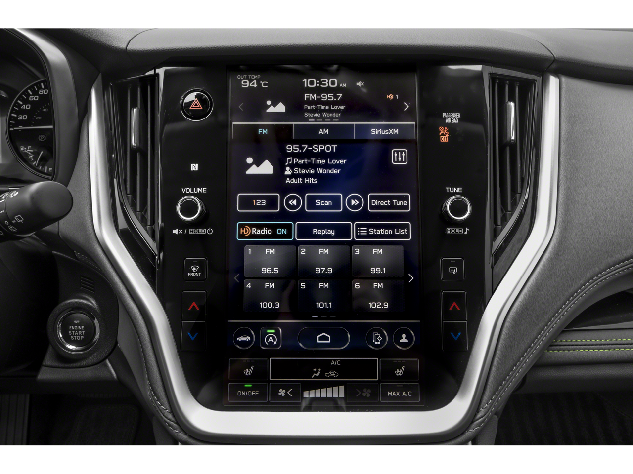 - Radio: Subaru STARLINK 11.6" Multimedia Plus Sys -inc: AM/FM stereo, HD Radio, valet mode, multi-touch gesture high resolution display screen, voice activated controls, Bluetooth® audio streaming and hands-free phone connectivity w/SMS text messaging (refer to subaru.com for cell phone compatibility), Near Field Communication (NFC), iPod control capability, SiriusXM 360L Platinum trial (4 months free trial/subscription required after), SiriusXM Travel Link (4 months free trial/subscription required after), smartphone integration: Android Auto and Apple CarPlay w/full screen view and wireless connection and STARLINK cloud applications (refer to subaru.com for app availability), USB and Over The Air (OTA) audio system update, audio system and Bluetooth® steering wheel control switches, 576 watt harman/kardon surround sound system w/12 speakers, illuminated 3.5mm auxiliary input jack and illuminated USB-A and USB-C input/charge ports SiriusXM Platinum trial available after launch, possibly October 2023.